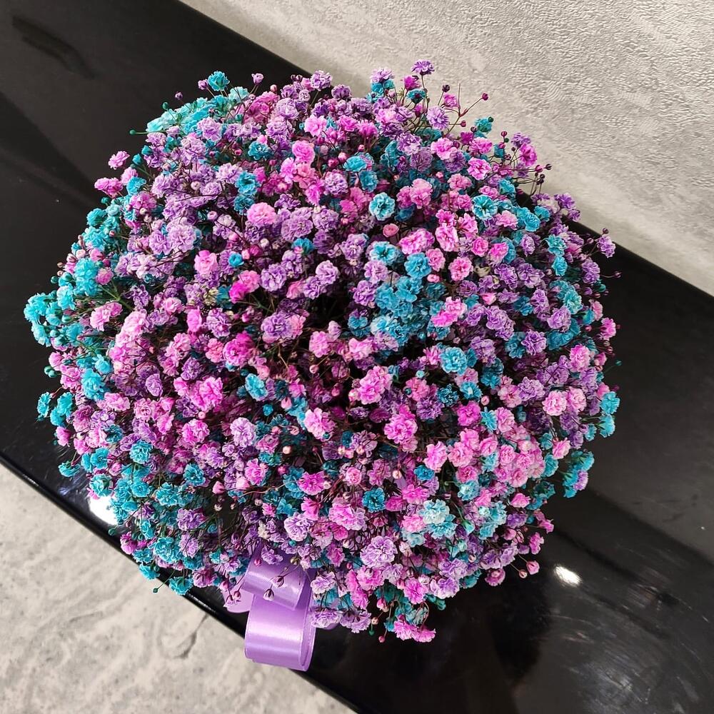Ароматная сиренево-бирюзовая гипсофила в шляпной коробке – вызовет восторг и приятные чувства у каждого 💜